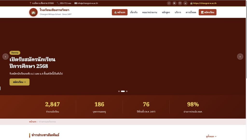 2. ตัวอย่างเว็บโรงเรียนสวย ๆ ในไทย (อัปเดต 2026) ที่น่าศึกษา